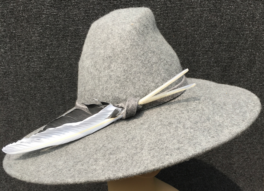 Grey Heathered Felt Wide Brim w/Feather Accents